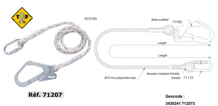 LONGE DE MAINTIEN AU TRAVAIL 2.0 M AVEC CONNECTEUR ET CROCHET