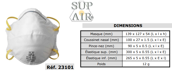 MASQUE A COQUE A USAGE UNIQUE AVEC SOUPAPE FFP2 SL