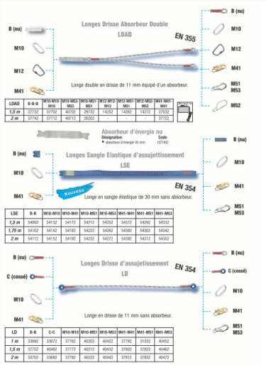 Elle ne concerne pas les antichutes, longes ou harnais.