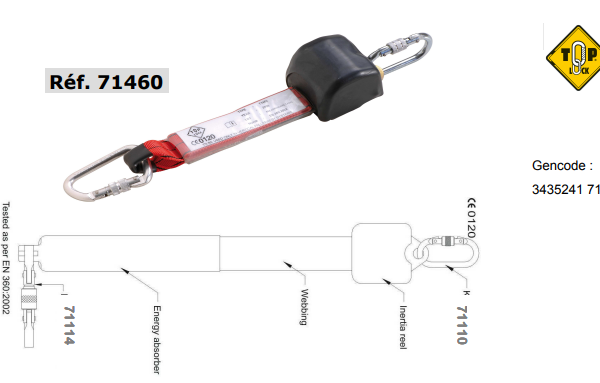 • Antichute à rappel automatique • Longueur max. : 7,5 mètres • Câble en acier galvanisé diamètre 4.8mm • Poids : 5,1 kg (+/-50 g)