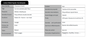 Durabilité et confort optimisés grâce à ses semelles Intermédiaires et d’usure en polyuréthane injecté de densité différentes.