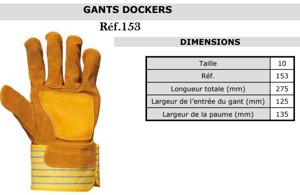 • Gants dockers en croûte de vachette • Dos en toile verte