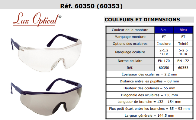 • Oculaire en polycarbonate courbe 5.5 • Support de branche en nylon ajustable 5