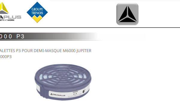Lot de 2 galettes P2 pour demi-masques M6200 JUPITER et M6100 JUPITER. Plastique et fibres synthétiques