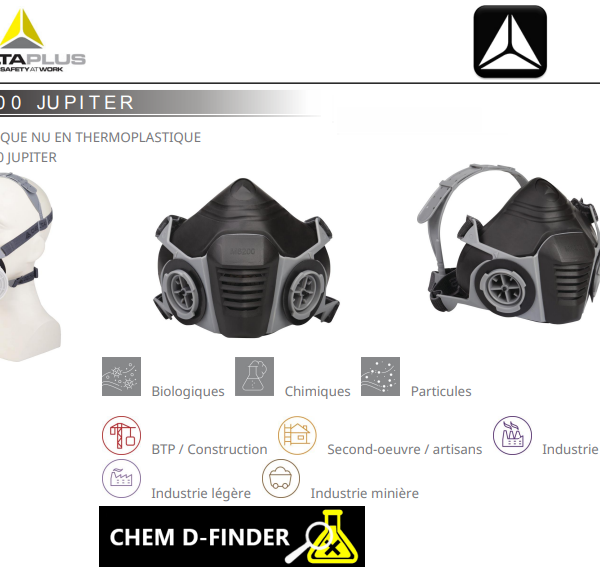 Demi-masque confort, tri-matière : corps du masque en thermoplastique élastomère (TPE) – Support pour
