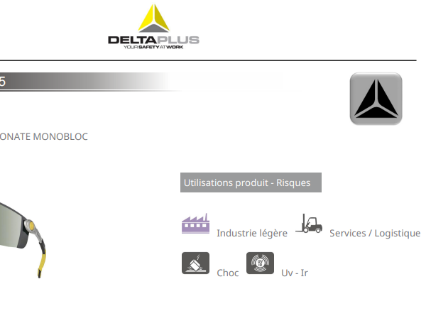 Lunettes polycarbonate monobloc. Design moderne et sportif. Protections latérales. Branches ouvertes pour