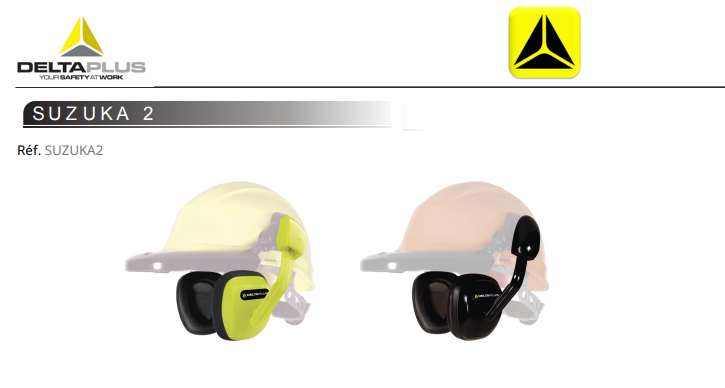 Coquilles antibruit pour casque de chantier réglables en hauteur. Bras et coquilles ABS haute flexibilité.