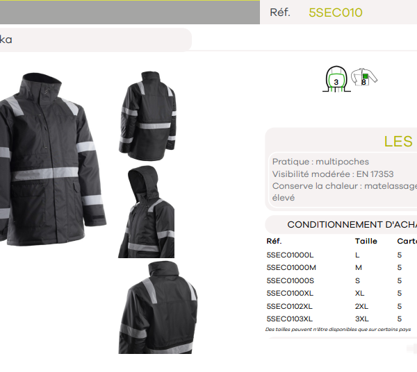Softshell 3 couches: 94% Polyester/ 6% Elasthanne + Membrane TPU +
