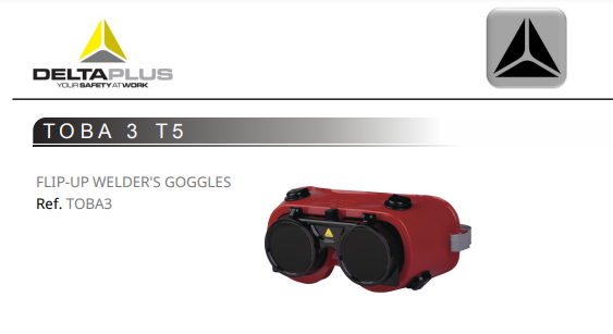 Lunettes polycarbonate monobloc. Branches nylon inclinables et ajustables. Embouts spatulés. Pont nasale