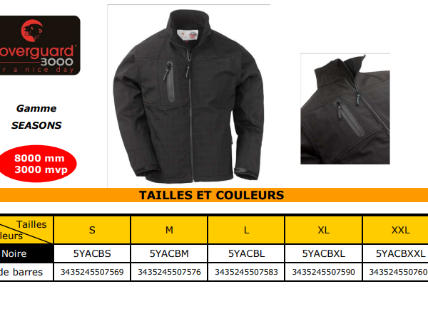 Extérieur: 100% Polyester stretch mécanique + Membrane TPU, 100g/m²